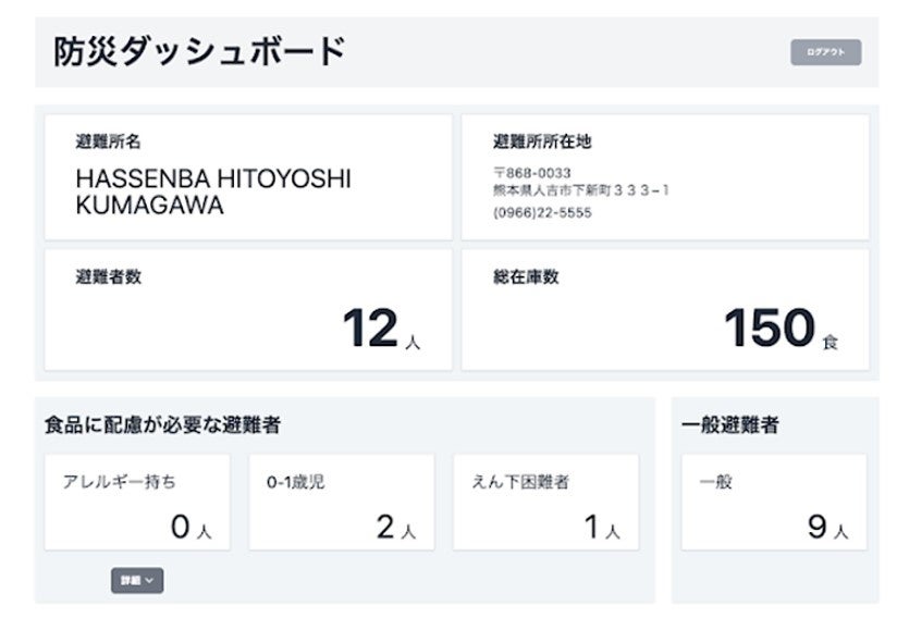 (画像:人吉市のダッシュボード上に避難者の属性が表示される様子)