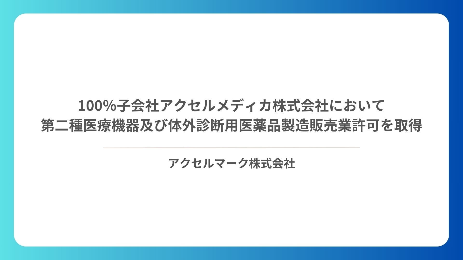 100%子会社 アクセルメディカ株式会社において第二種医療機器及び体外診断用医薬品製造販売業許可を取得