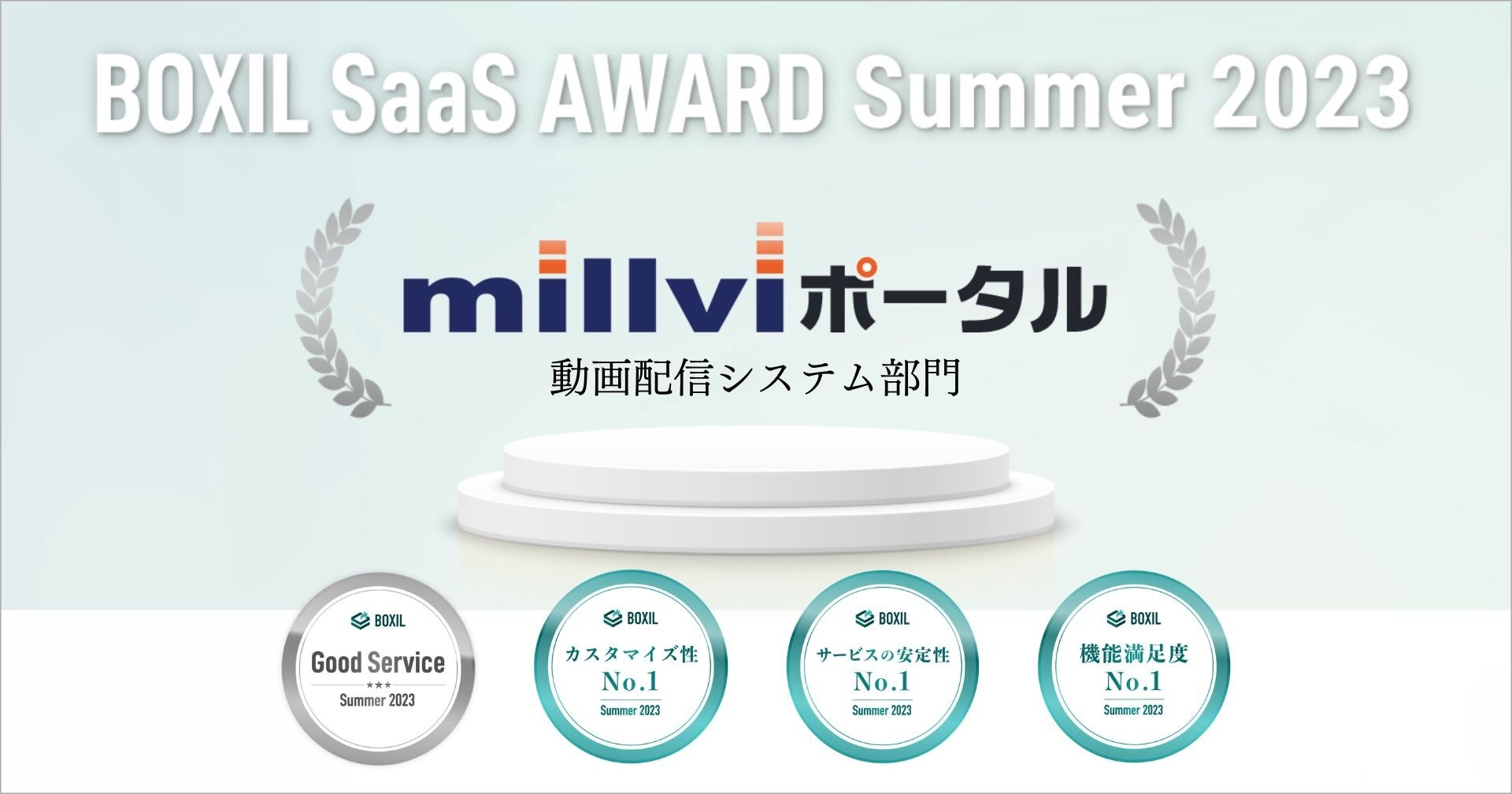 会員制動画配信プラットフォーム『millviポータル』が、「BOXIL SaaS AWARD Summer 2023」動画配信システム部門で「Good Service」ほか3つのNo.1に選出
