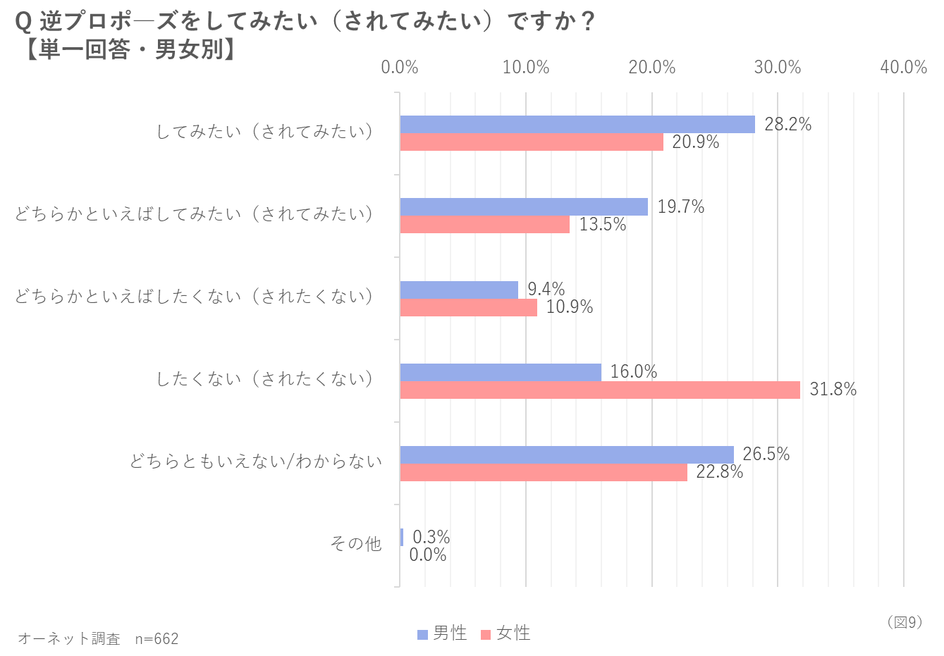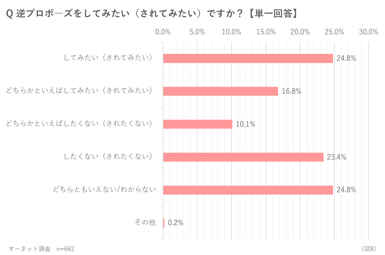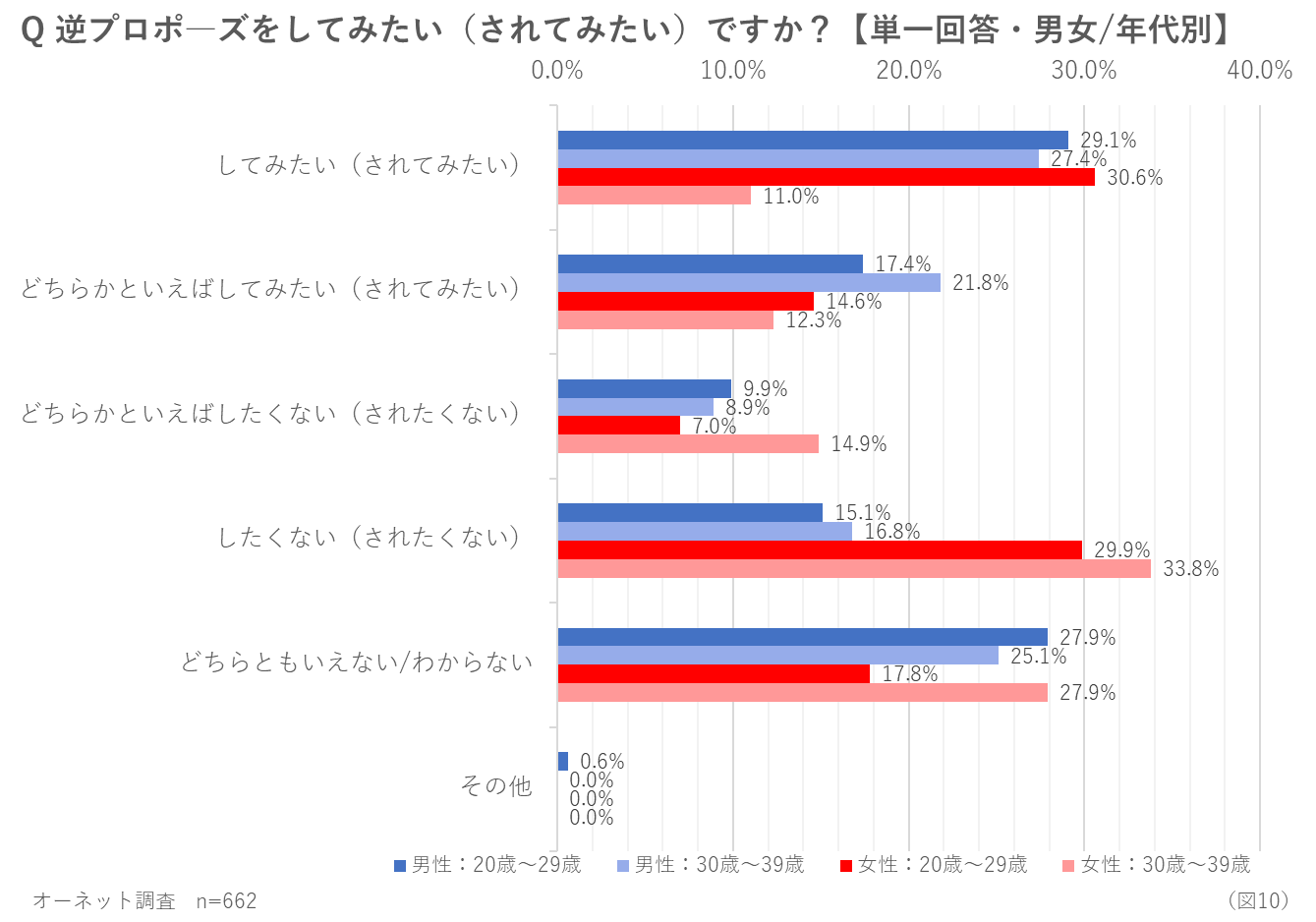 特に20代に関しては、「逆プロポーズ」に憧れのある男性と「逆プロポーズ」をしてみたい女性で、男女のニーズがマッチしているようだ。