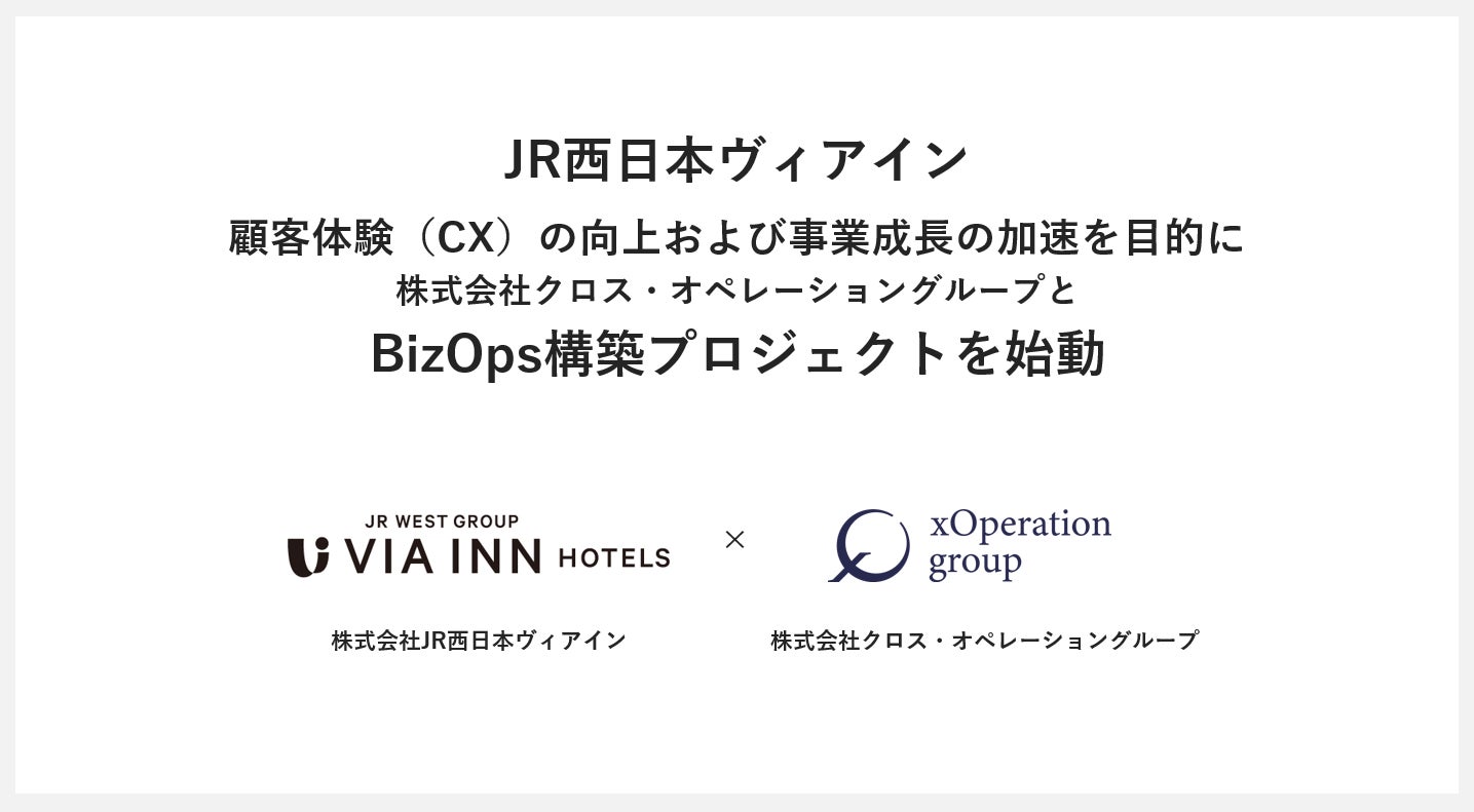 BizOps専門カンパニーとして、先端技術の業務(Ops)融合を得意とし、生成AIを活用した業務改善支援およびBizOps/xOps構築支援を行う株式会社クロス・オペレーショングループ(東京都千代田区、代表取締役:田中 亮大、以下XOP)は、シンプルで心地よい「MY HOME HOTEL.」をブランドコンセプトにホテル事業運営を行う株式会社JR西日本ヴィアイン(兵庫県尼崎市、代表取締役社長:滝口 謙一、以下JR西日本ヴィアイン)と共に、同社の顧客体験の向上および事業成長の加速を目的とし、BizOps構築プロジェクトを始動したことをお知らせします。