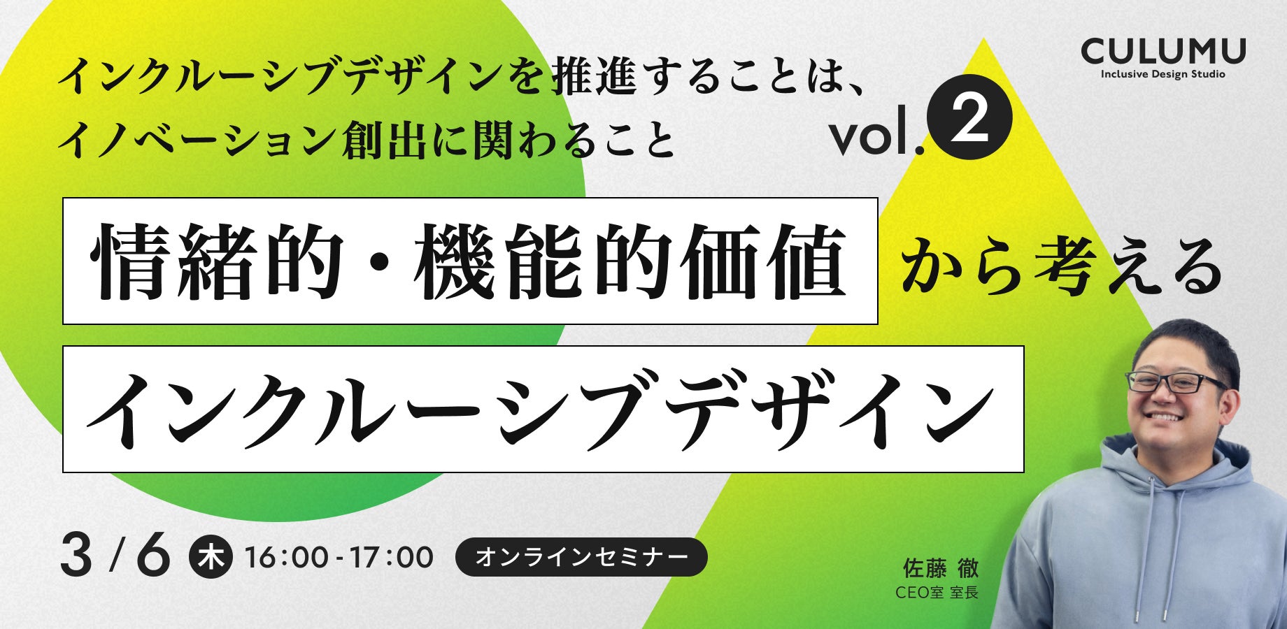 【3/6 セミナー開催】なぜ「インクルーシブデザインが共感を生み、社会的価値を創出するのか?」 ”社員の当事者意識向上・情緒的価値・機能的価値創出" の3視点から解説