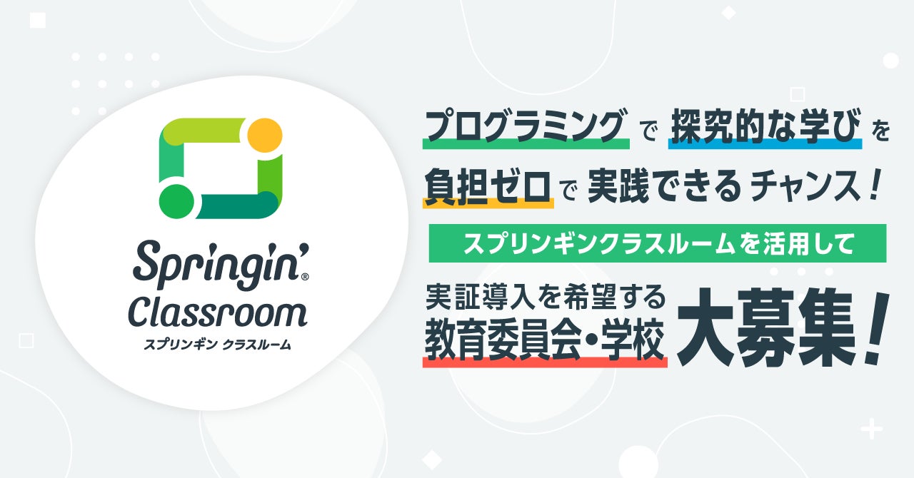 探究的な学び支援補助金を利用して「Springin’ Classroom」を導入し実証いただける学校等教育機関(教育委員会・学校)の募集を下記の通り行います。