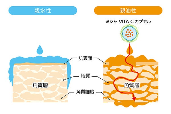 親水性のビタミンC*³が角質層に早く浸透するようカプセル化。さらにシートとの相性を考えカプセルをナノ化し、有用成分を効果的に届け、毛穴の目立たない引きしまった肌に導きます。