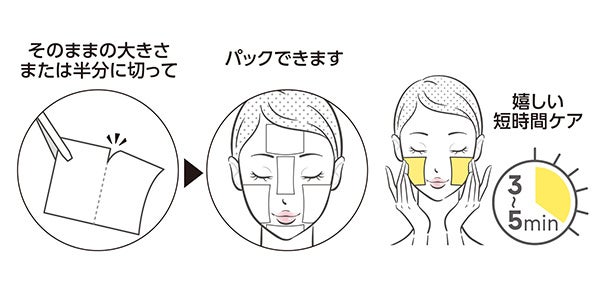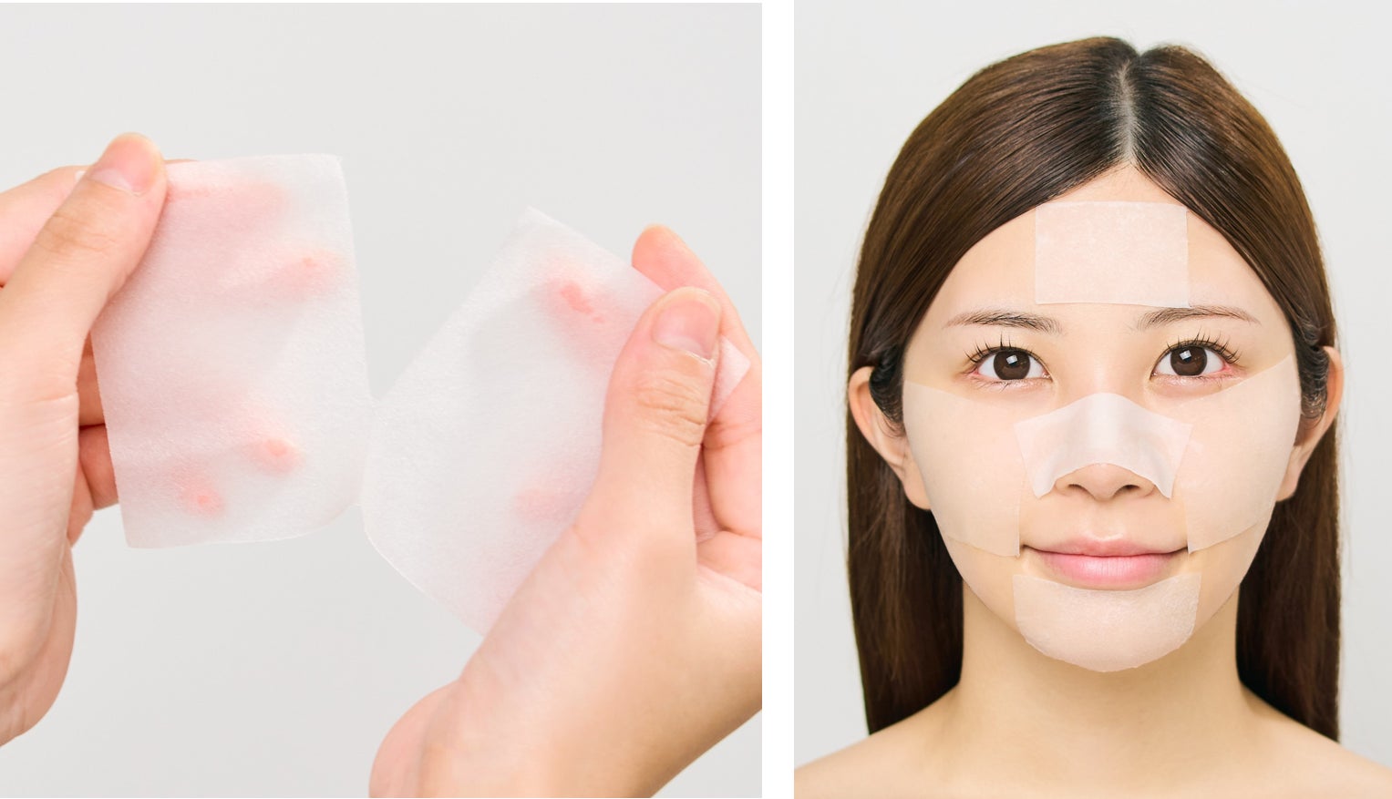 お顔の気になる部分にマスクパックのように貼って3~5分程度密着させます。