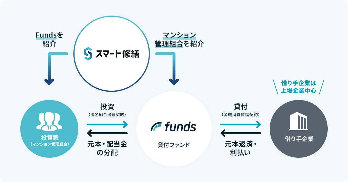 固定利回り投資の資産運用サービス「Funds(ファンズ)」を運営するファンズ株式会社(本社:東京都渋谷区、代表取締役CEO:藤田 雄一郎、以下 当社)は、マンションやビルなど大型建物の大規模修繕など共用部工事の見積、工事支援サービスを展開する株式会社スマート修繕(本社:東京都渋谷区、代表取締役:豊田 賢治郎、以下 スマート修繕)と顧客紹介の契約を締結したことをお知らせいたします。