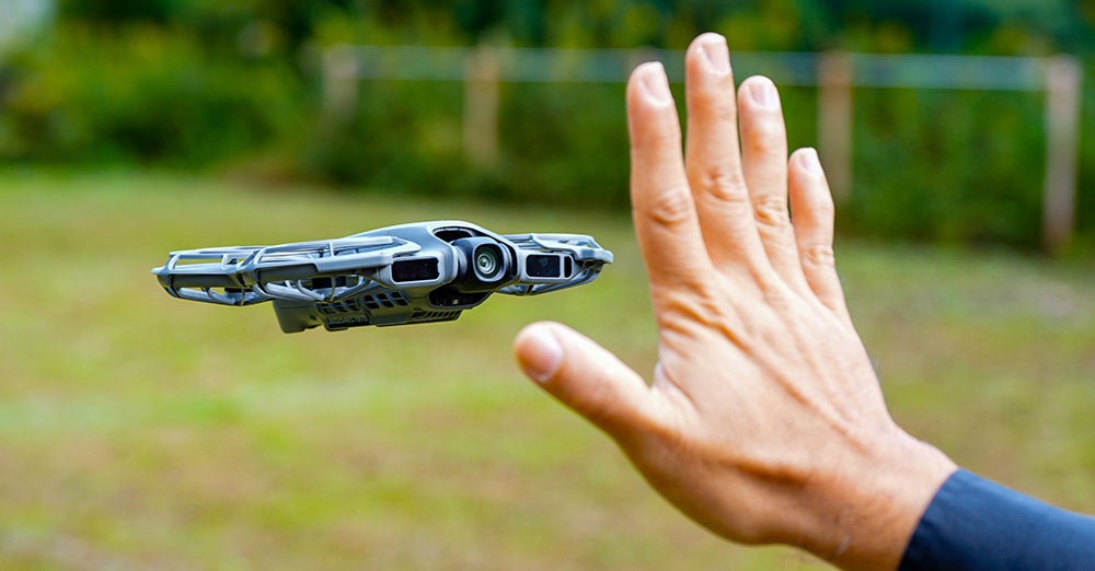 手のひらをかざすだけで上下左右へとふわりと誘導でき、両手を使えば前後距離の調整も思いのまま。カメラアングルの細かな調整も、もはや送信機いらず。
