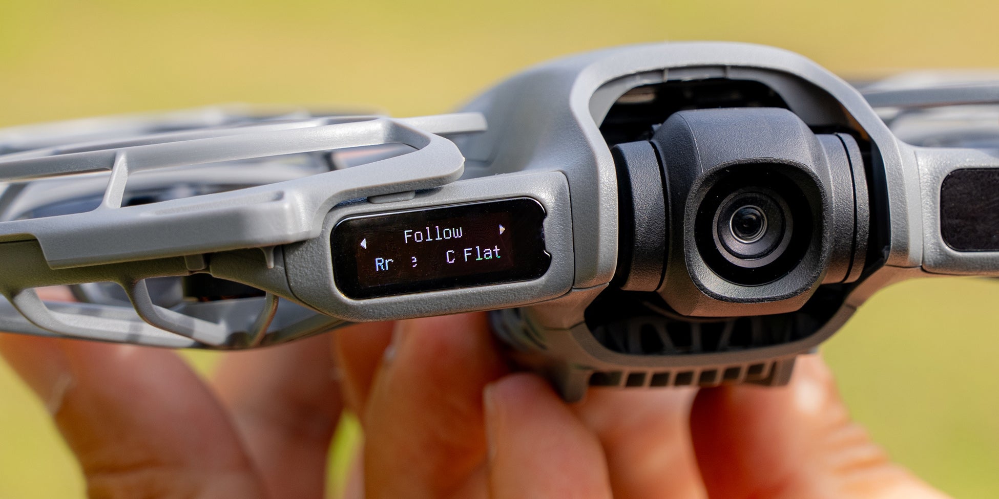 起動時は本体を自分側に向け、テイクオフボタンを押すだけで準備完了。手のひらからふわりと離陸し、そのままの流れで自動録画がスタートします。