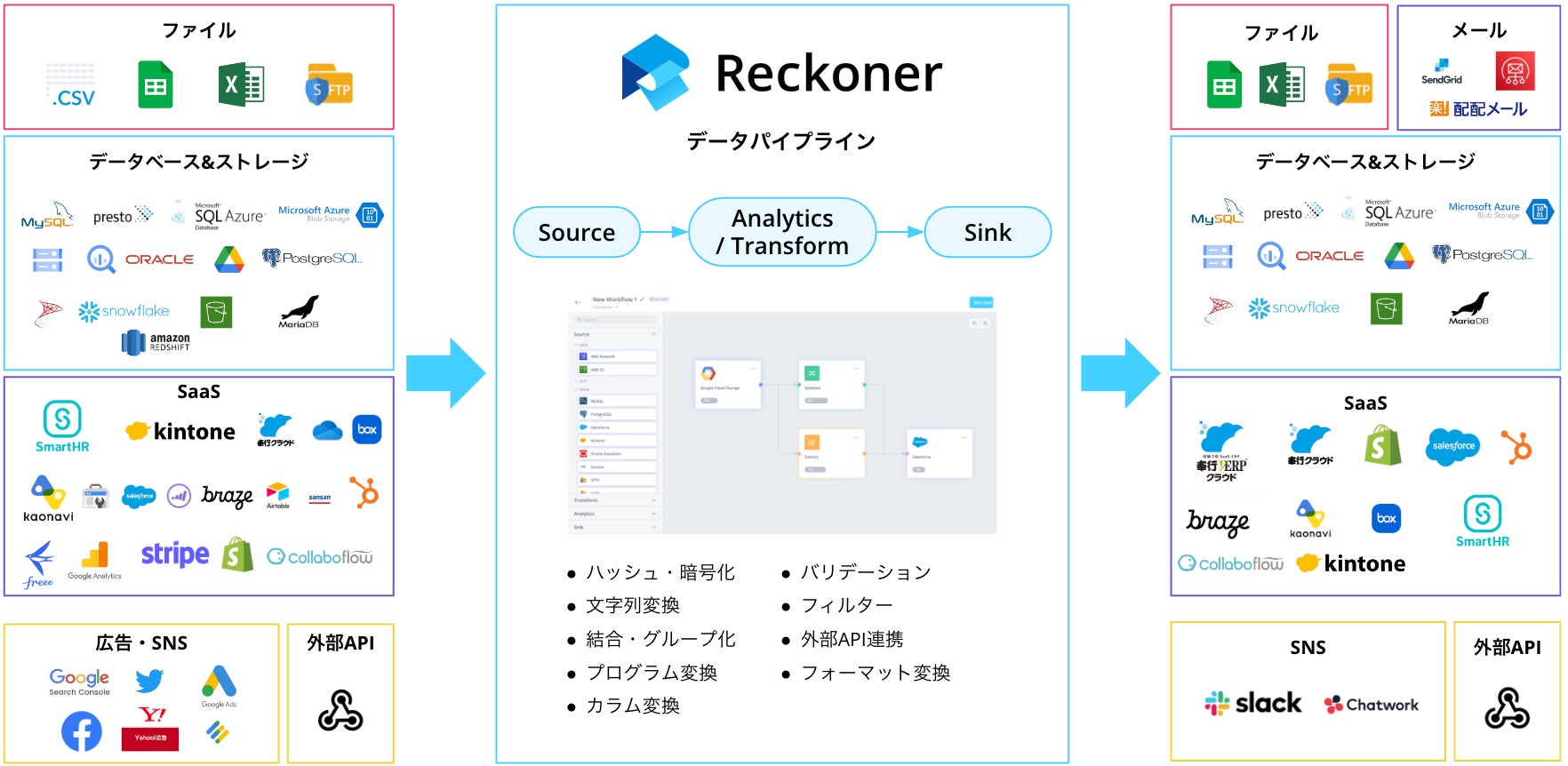 「Reckoner」は、データの集約・加工・連携をノーコードで誰でも簡単に実行できるクラウドサービスです。