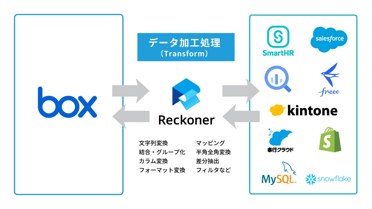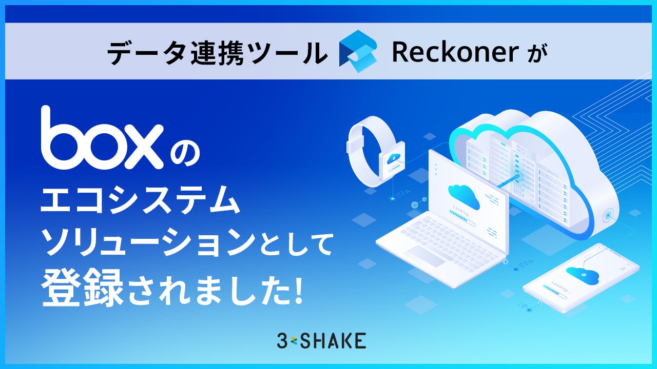 株式会社スリーシェイク(本社:東京都新宿区、代表取締役社長:吉田拓真、以下スリーシェイク)が提供するクラウド型データ連携ツール「Reckoner」とコンテンツクラウド「Box」との連携機能が、エコシステムソリューションとして登録されました。この連携により、Box ユーザーはReckonerを通じて、Box データをMA、SFA/CRM、ERP、会計システムなど100種以上の多様なSaaSにシームレスに連携することが可能になります。