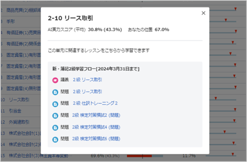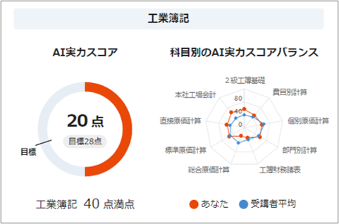 *上記のAI実力スコアは、日商簿記検定試験2級の例です。