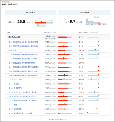 *2 : 単元別スコアは、その単元に関連する問題を、1回でも学習した受講者の中での位置を表示しています。