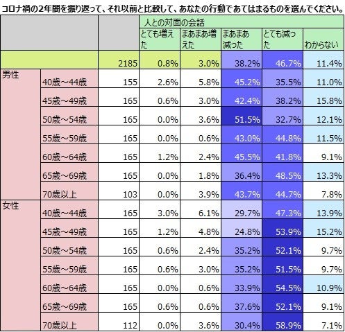 コロナ禍で「対面の会話が減った」中高年、8割超