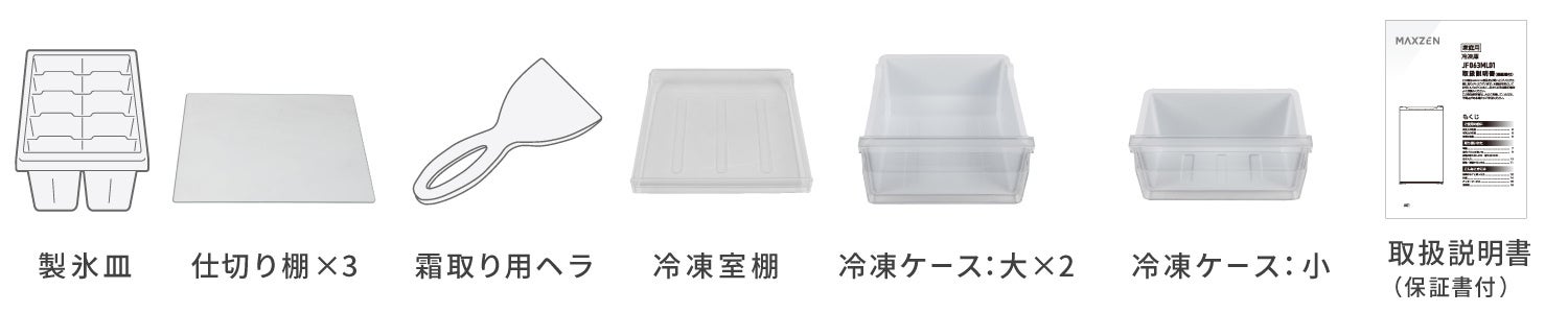 冷凍室棚、冷凍ケース大×2、冷凍ケース小×1