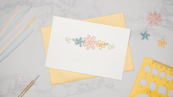 「美しい紙の渦、ペーパークイリングで花のカードを作ろう」
