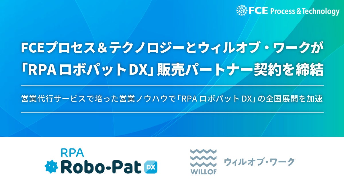 FCEプロセス&テクノロジーとウィルオブ・ワークが「RPAロボパットDX」販売パートナー契約を締結