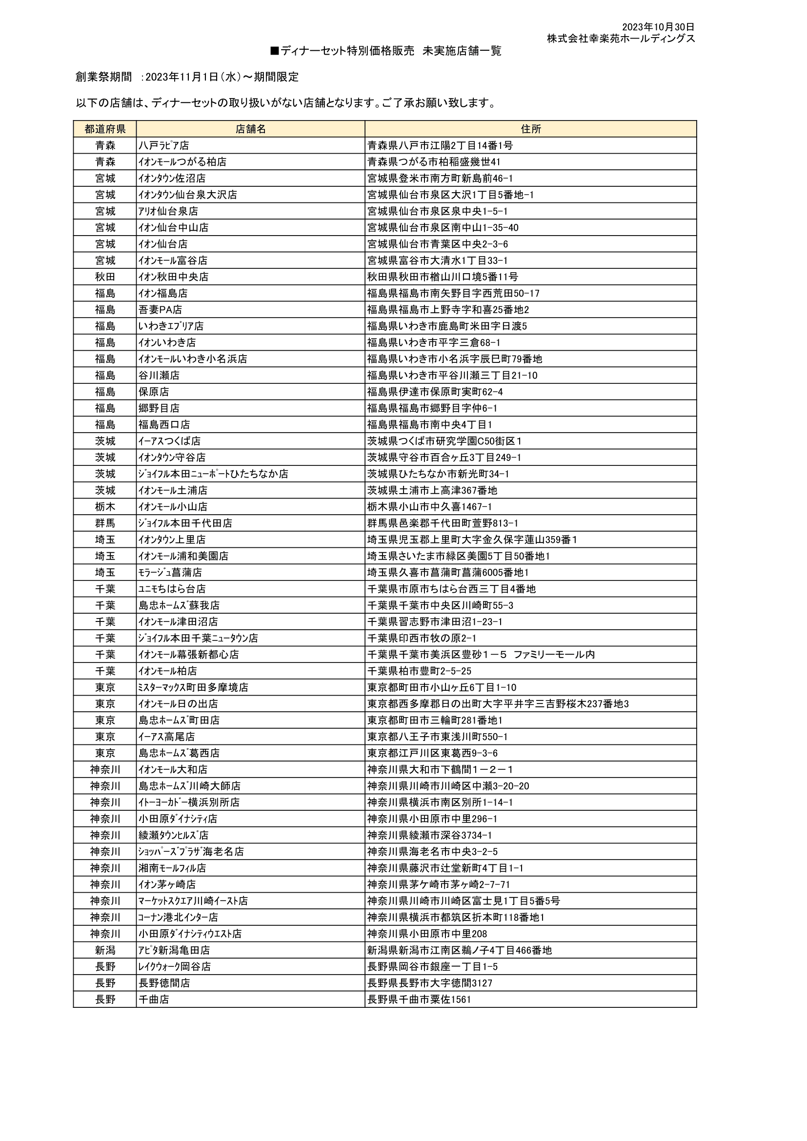 株式会社幸楽苑ホールディングス(本社:福島県郡山市、代表取締役会長兼社長:新井田 傳、以下 幸楽苑)は、創業祭でご好評を頂きました、時間帯限定メニュー「ディナーセット」の特別価格販売を、2023年11月1(水)から期間限定で実施します。