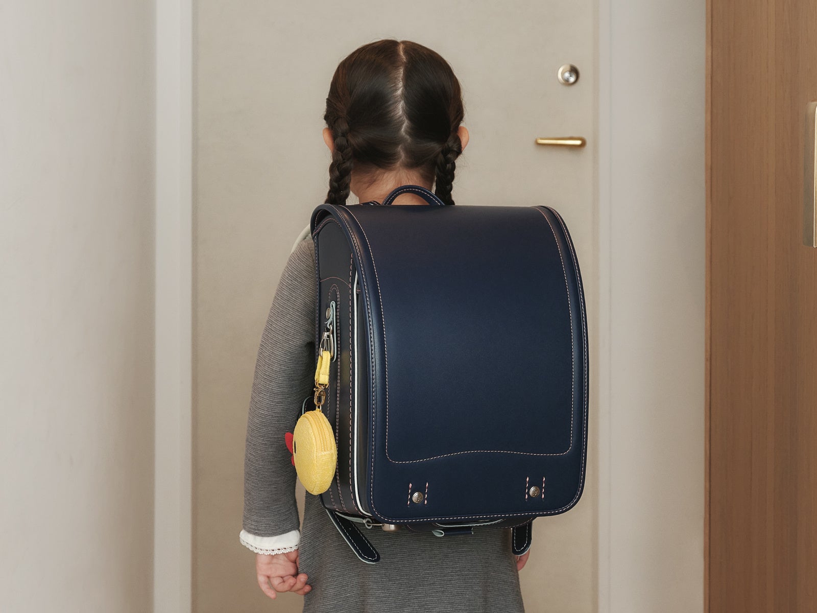 今回のコラボレーションでは、赤ちゃんから大人まで幅広い世代に愛されているフェイラーの人気デザイン『HEIDI(ハイジ)』をかぶせの内側にプリントし、ランドセルのアクセントとして、『ハイジ』のデザインに登場する人気のモチーフ「アヒル」のチャームポーチをつくりました。
