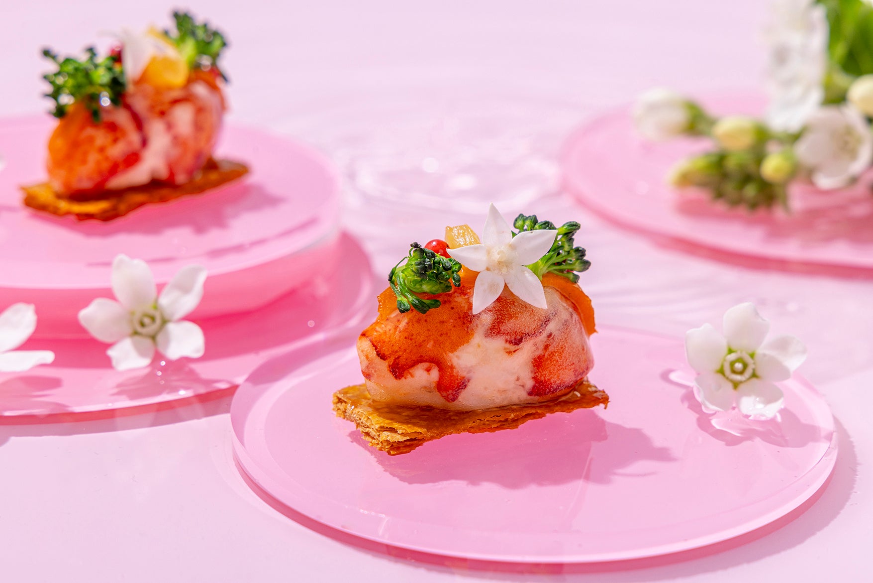 ・ オマール海老と桃のタルタルのクネル仕立て バジルの香り ※デラックスアフタヌーンティーにて提供