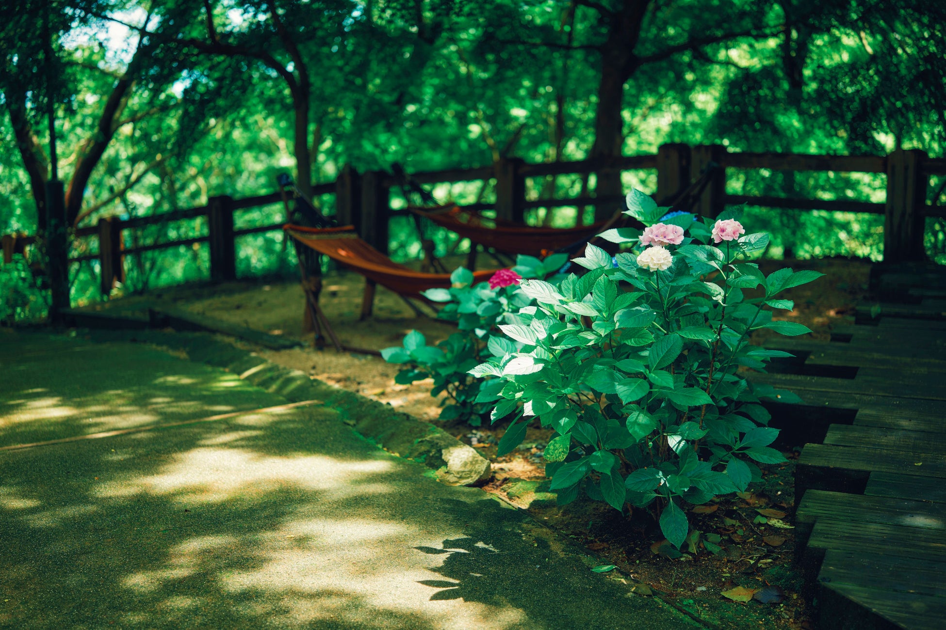 木漏れ日の中、ガゼボででひと休みをしたり、ハンモックに揺られたり、ベンチで寛いだりと優雅に可憐なアジサイ鑑賞が出来るのも神戸布引ハーブ園ならではです