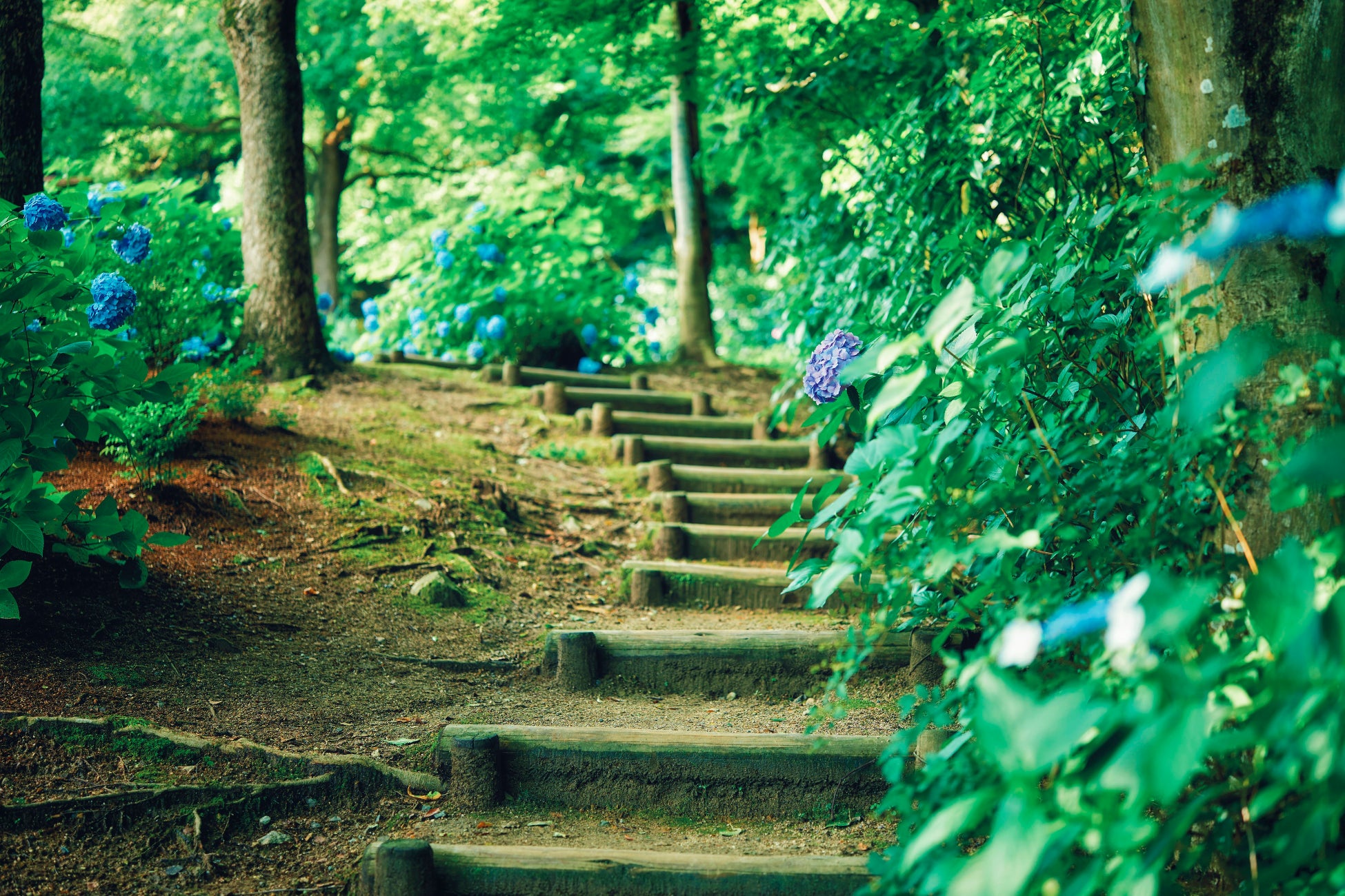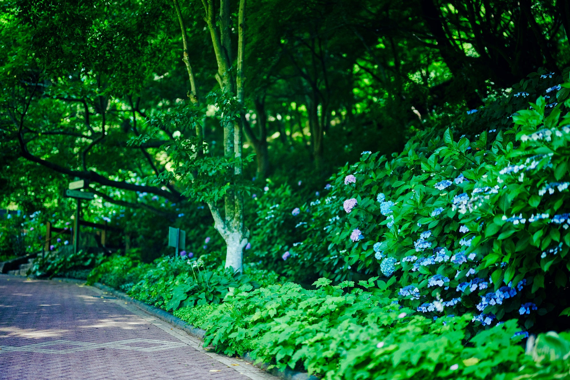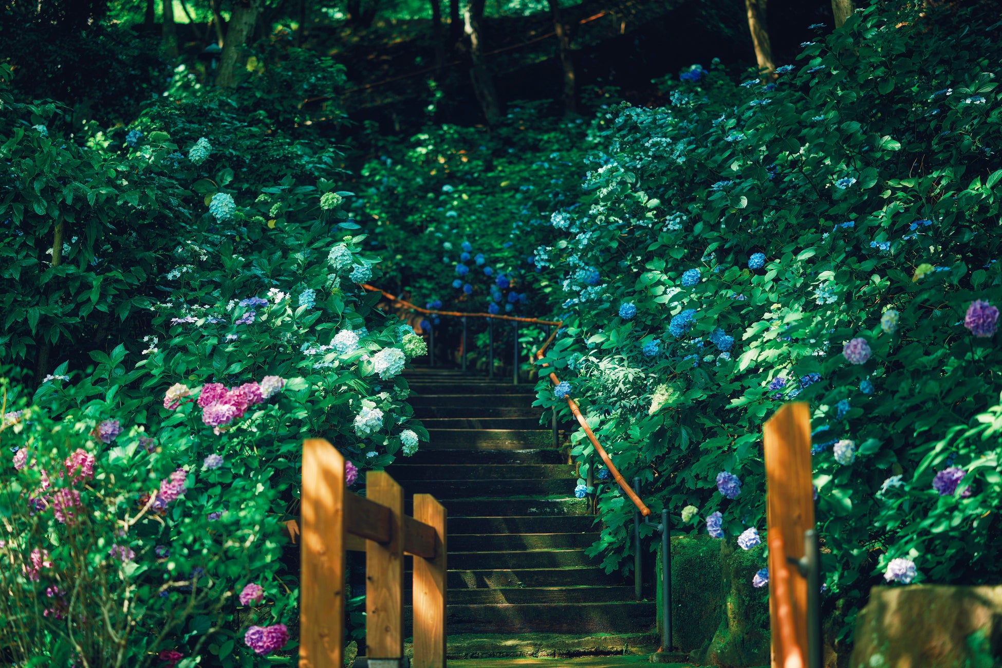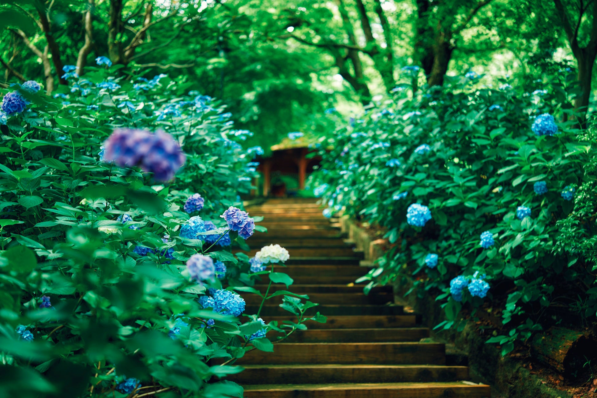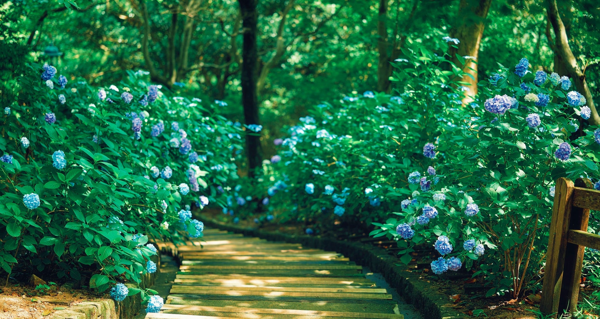 神戸布引ハーブ園の癒しの散歩道。小径を埋め尽くすアジサイを愛でながら、アジサイ散策をお楽しみください