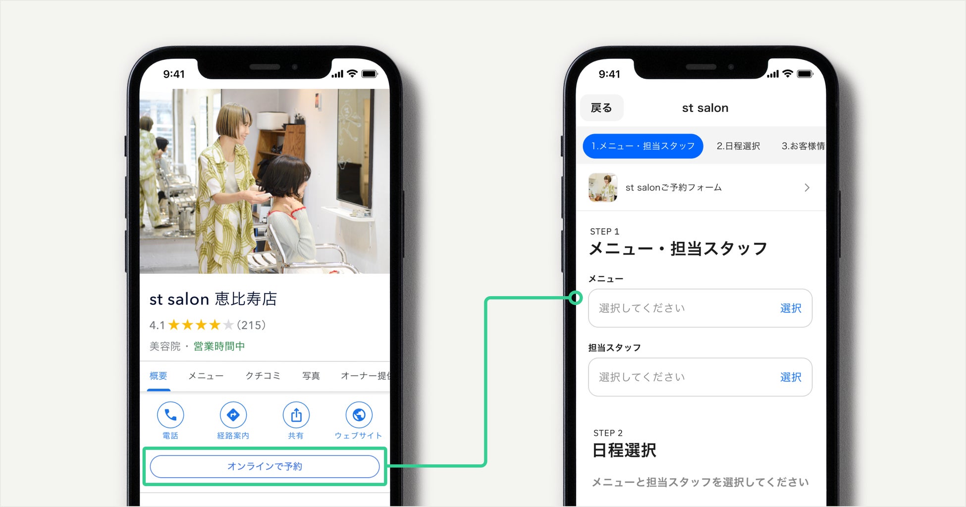 Google の画面上で予約完結するフローから、「予約する」ボタンを押すと STORES 予約 の予約フローに遷移する形に変更します。