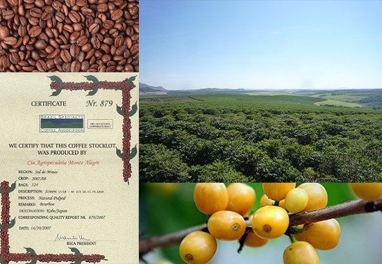 コーヒーの原産地「モンテアレグレ農園」は、BSCA(ブラジルスペシャルティコーヒー協会)のメンバーでもあり、スペシャルティコーヒーの世界に名だたる大農園です。蜂蜜やチョコレートのような甘い香りと、最後に残る甘みをお楽しみください。
