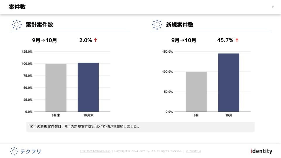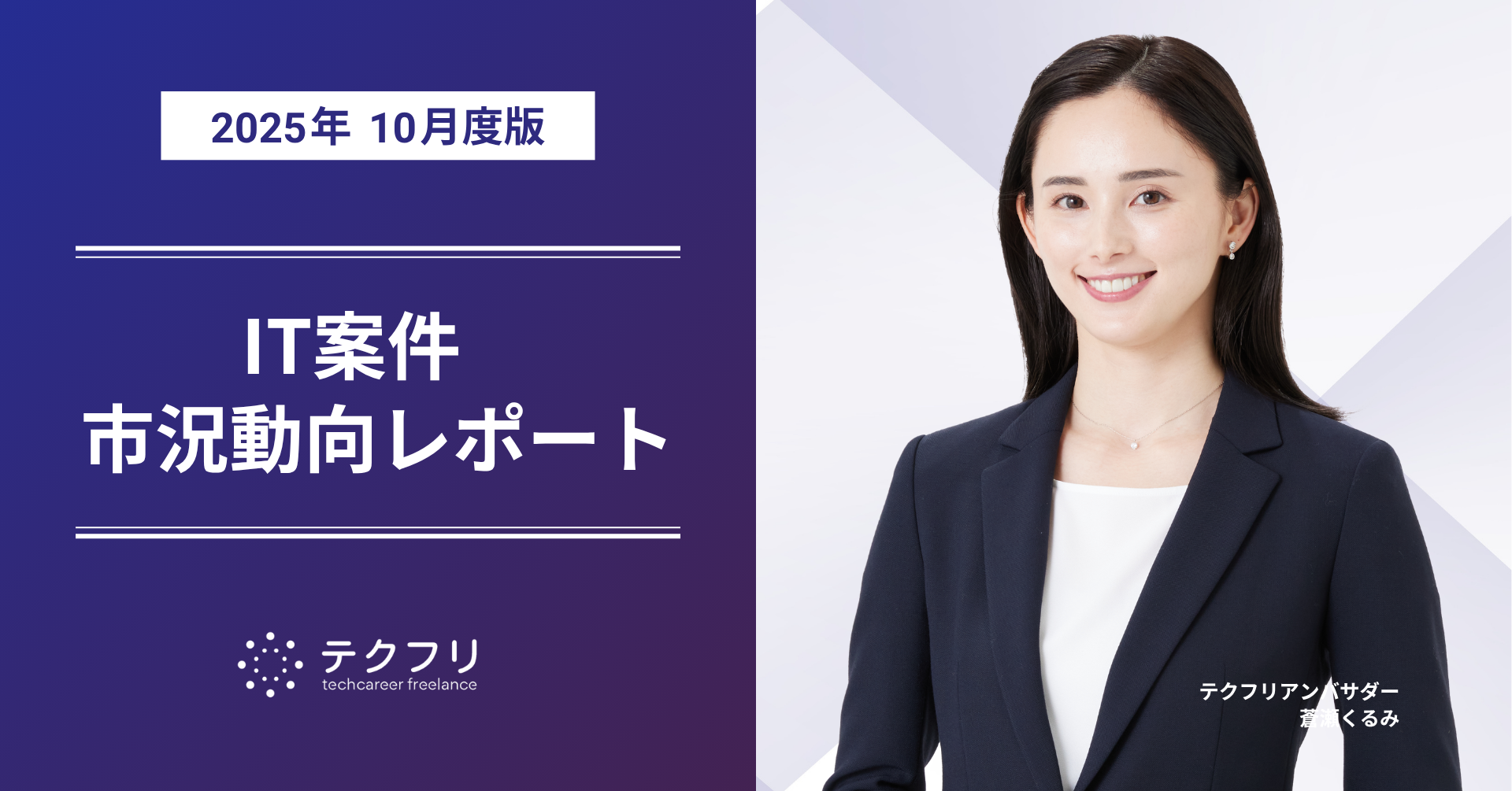 ITフリーランスエンジニアの案件・求人サイト「テクフリ」(https://freelance.techcareer.jp/)を運営する株式会社アイデンティティー(東京都港区、代表取締役:今野 力、以下「当社」)は、テクフリのデータベースをもとに2025年10月における案件の市況感を調査しました。より詳しい結果については、お問い合わせから資料請求が可能です。