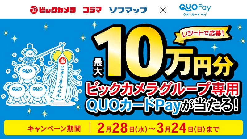 「ビックカメラ」「コジマ」「ソフマップ」でQUOカードPayがご利用いただける店舗が2月28日(水)より「全店」に拡大します! ~抽選で最大10万円分のQUOカードPayが当たるキャンペーンも開催~