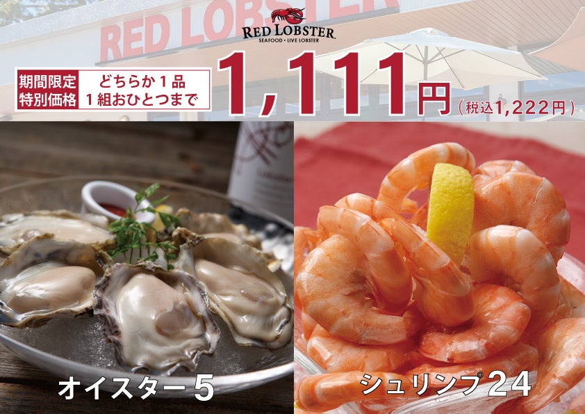 ・本メニューは1組おひとつ、「オイスター5」または「シュリンプ24」のいずれか1品のみご注文可能です。2品同時にご注文は出来兼ねますのでご了承下さい。