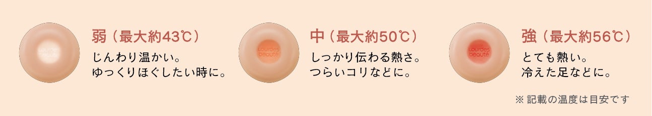 温度 :弱(最大約43℃)・中(最大約50℃)・強(最大約56℃)