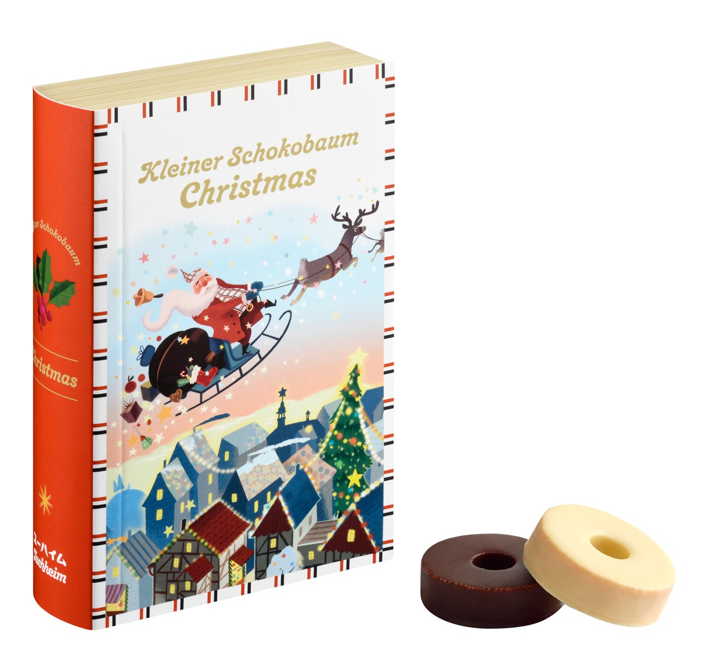バターの風味を楽しめる生地と、カカオの風味がほろ苦い生地を組み合わせたビスケット。 トナカイとツリーの2種類の絵柄入り。
