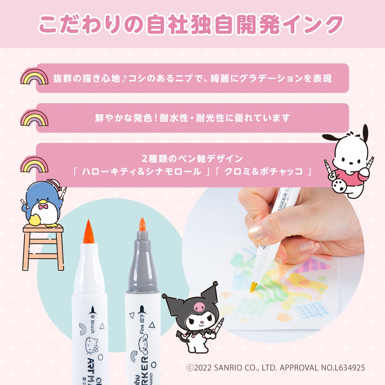Ohuhuマーカーとサンリオ初のコラボレーションとして、可愛らしい限定デザインが魅力!キャラクター達がマーカーペンを持ったデザインがポイントです。梱包ボックスからペンのボディにまでこだわり、創作時間をより楽しく、華やかに彩ります。お祝い事やこれから迎えるホリデーシーズンに向けて、プレゼントとしても最適です。
