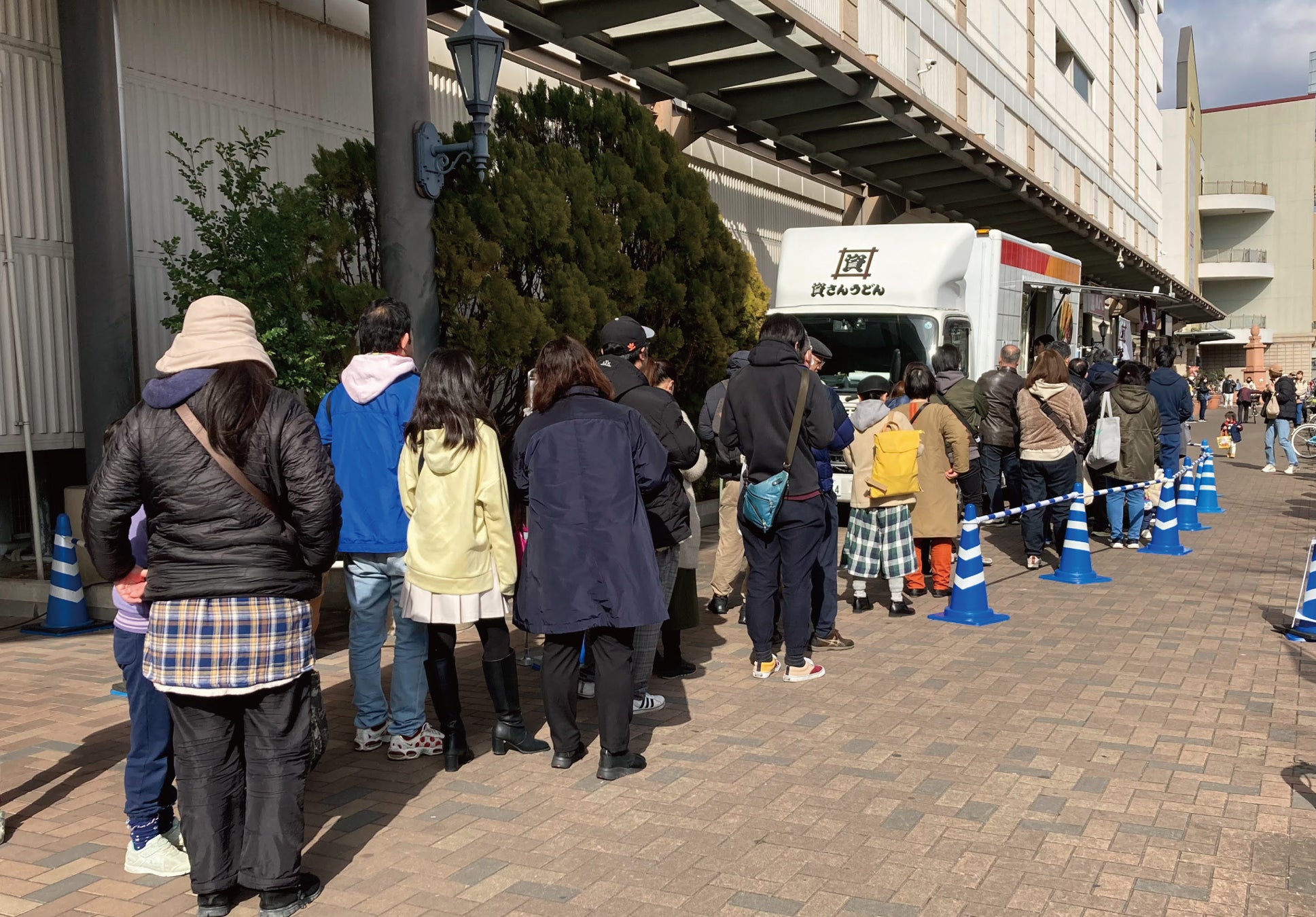 昨年の夏にお邪魔して以来のキッチンカーでの販売となりましたが、キッチンカー常連のお客さまとの嬉しい再会や、4日間毎日お越し頂くお客さまもいらっしゃる等、今回も沢山のお客さまにお会いする事ができました。また、初日は寒さが厳しく、あいにくのお天気だったのですが、雪が舞う中で「肉ごぼ天うどん」を召し上がっていただいたお客さまから掛けていただいた「美味しかったよ!」というお声に、私たちも、とても温かい気持ちで一杯になりました。