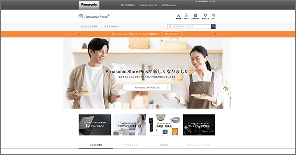 『Panasonic Store Plus』はパナソニックの家電製品の販売の他、サブスクリプション型の定額利用サービスや、豊富なコンテンツ、多種多様なキャンペーンなど、快適なくらしづくりをお手伝いする情報を発信しています。