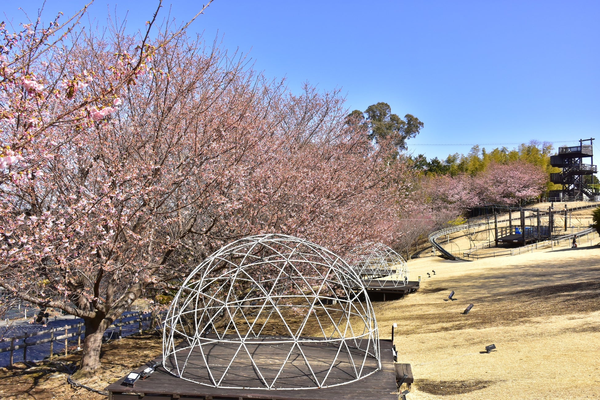 伊豆ぐらんぱる公園では、2004年に植栽した早咲きのご当地桜「城ケ崎桜」が、現在二分~三分咲きとなっております。