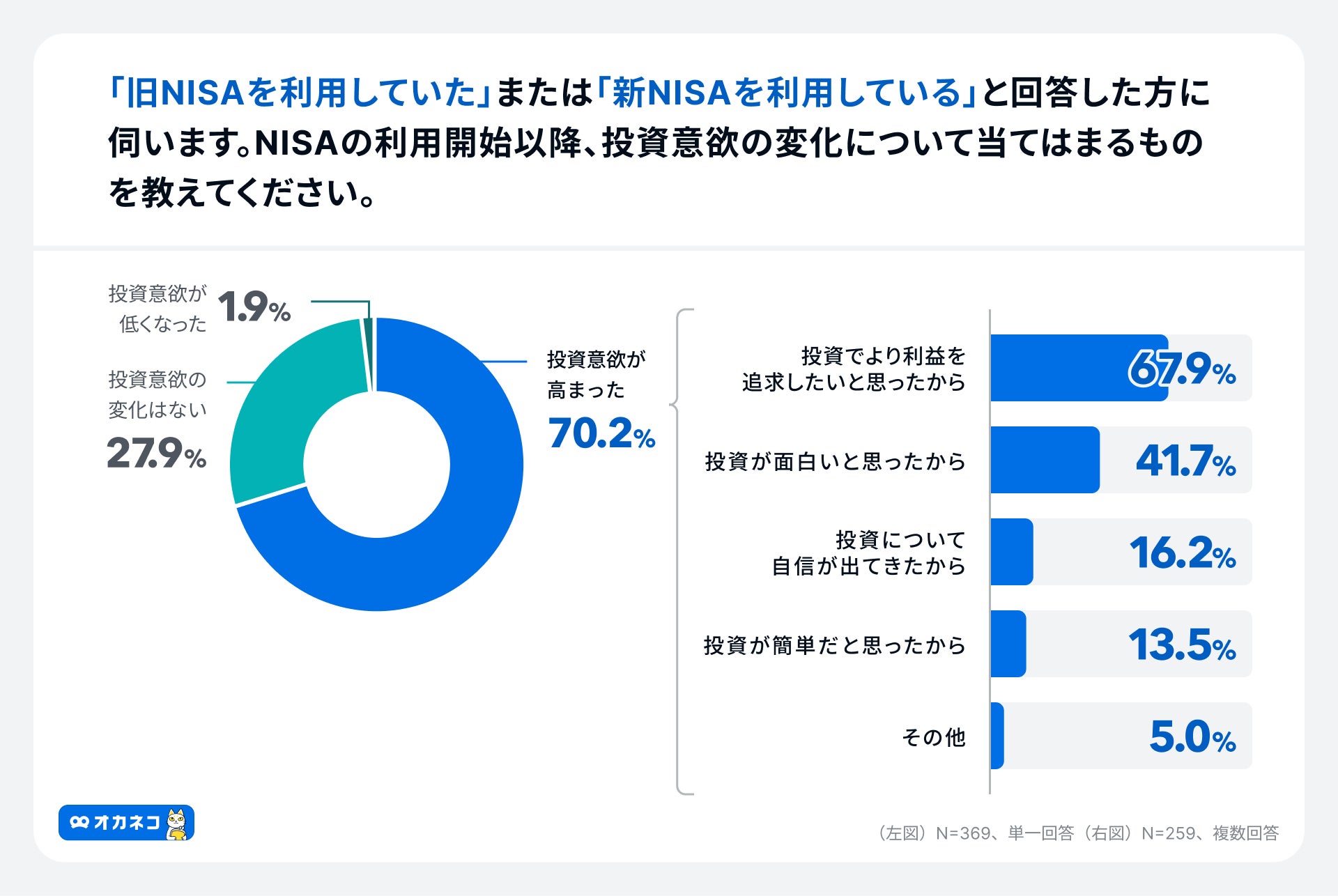 NISA利用者9割が「満足している」と回答、7割はNISA利用後「投資意欲高まった」