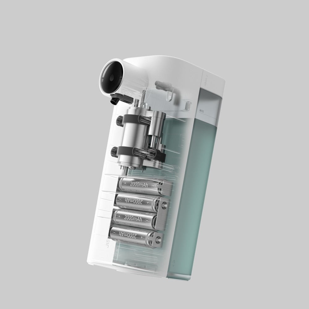 手をかざすだけで、赤外線センサーが反応しフワフワの泡が出てきます。