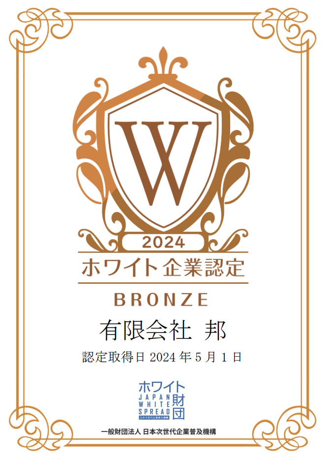 有限会社邦は2024年5月1日に「ホワイト企業認定 ブロンズランク」を取得されました!