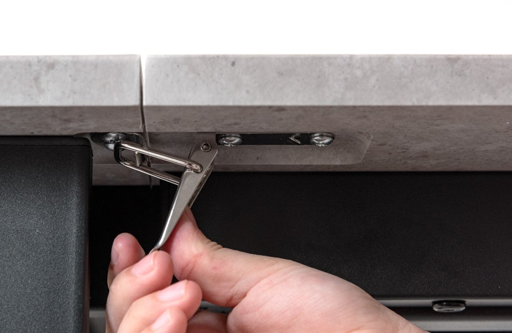 本製品は天板内部に伸長パーツの格納場所があるため見た目のデザインも損なわず、別途伸長パーツの保管スペースもとらないところもポイントです。