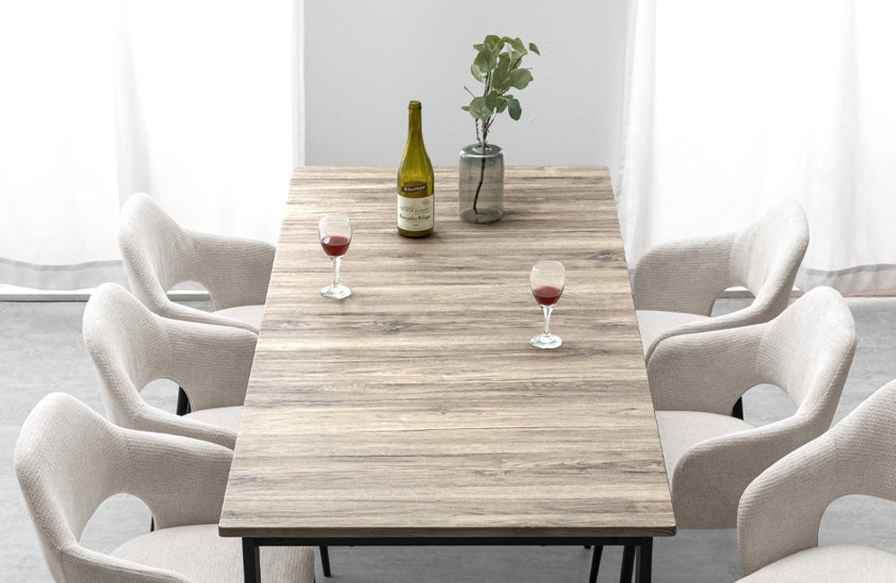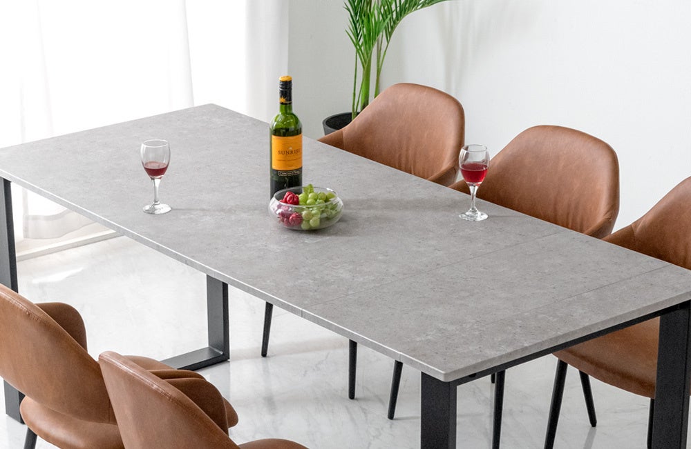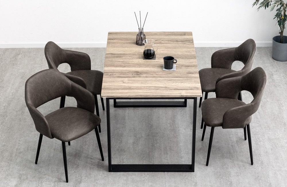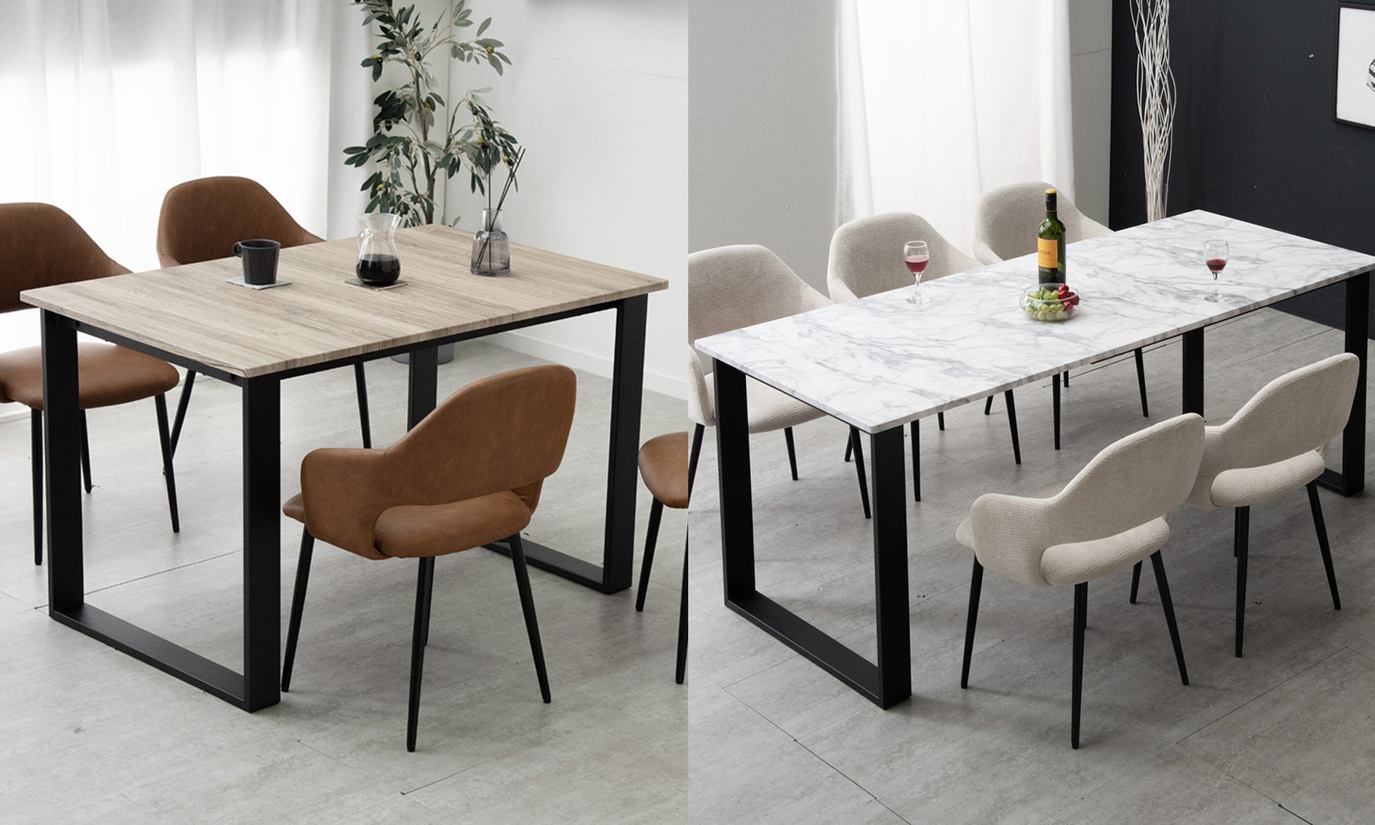 本製品もロの字脚デザインのブラックアイアンを搭載することで、これまでの伸長式ダイニングテーブルの脚部の中でも最も存在感のあるデザインに仕上がりました。