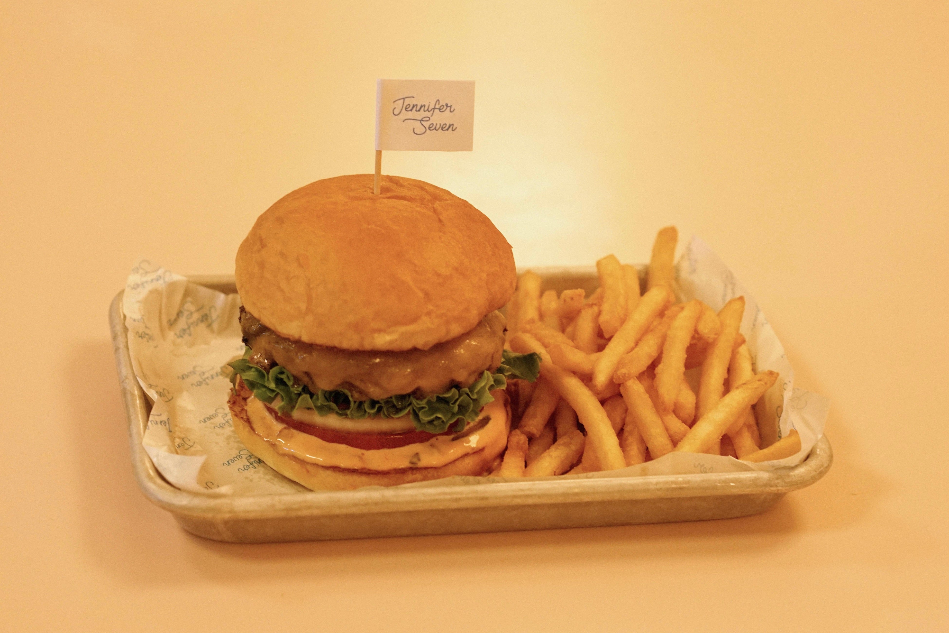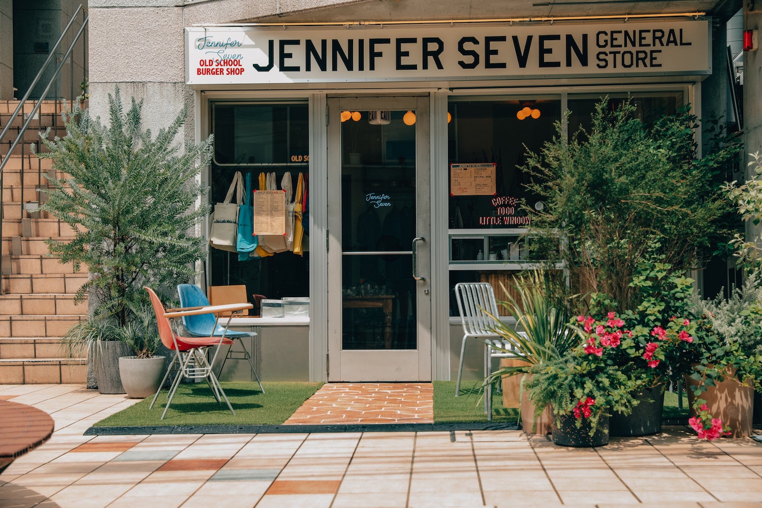 「Jennifer Seven」は表向きはジェネラルストア、奥の扉を開くとシークレットなバーガーショップが現れる遊び心溢れる空間です。「THE GREAT BURGER」で展開してきたボリューム満点のグルメバーガーではなく、昔ながらのシンプルでクラシックなスタイルのハンバーガーを提供いたします。ジェネラルストアではオリジナルアパレルやユーズドリメイク、アメリカで仕入れてきたキッチンアイテムやヴィンテージ雑貨などを販売しています。
