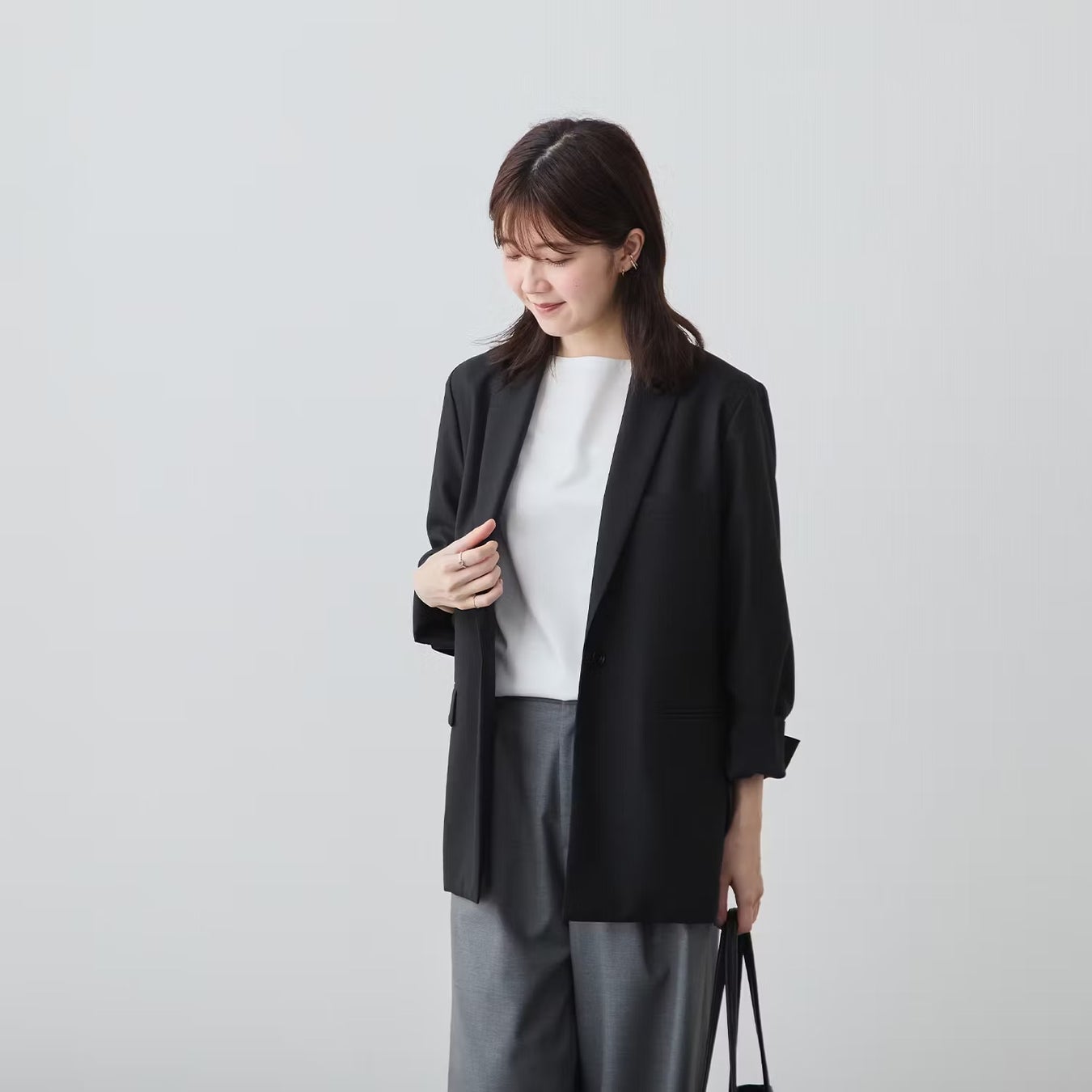 そこに、今っぽいナチュラルな雰囲気をほんのり加えて、かっちりしすぎない、着心地のよさも大切にしました。