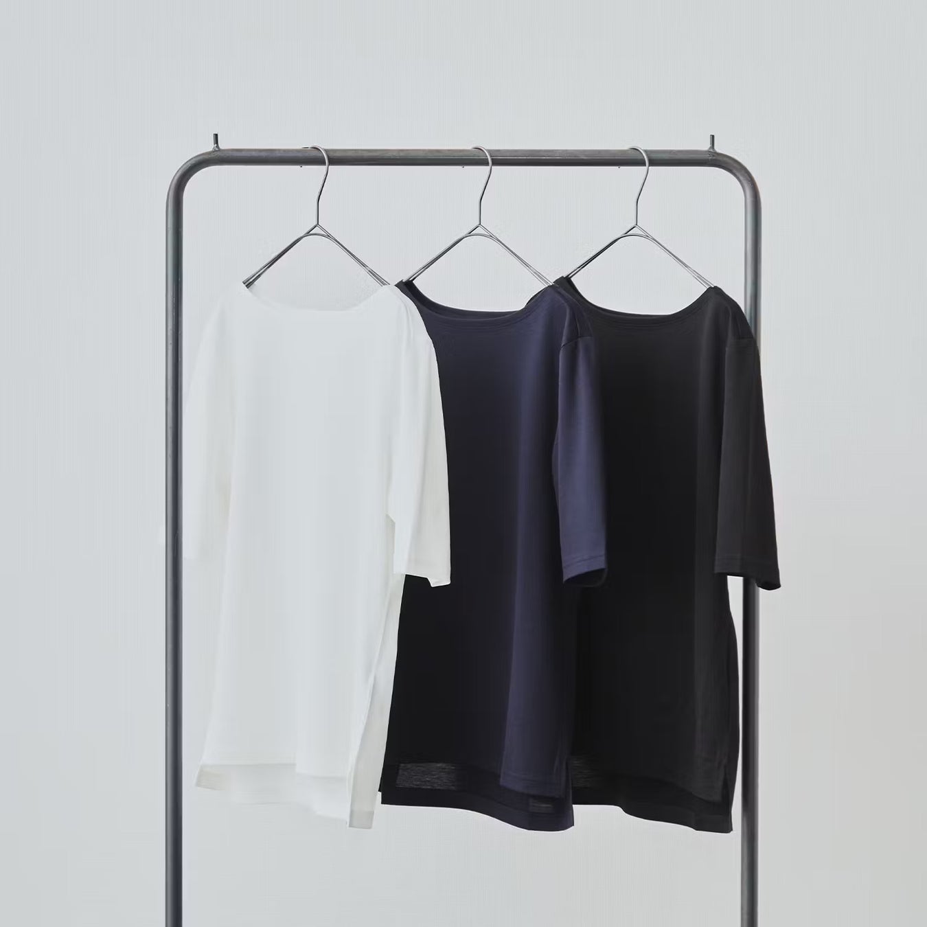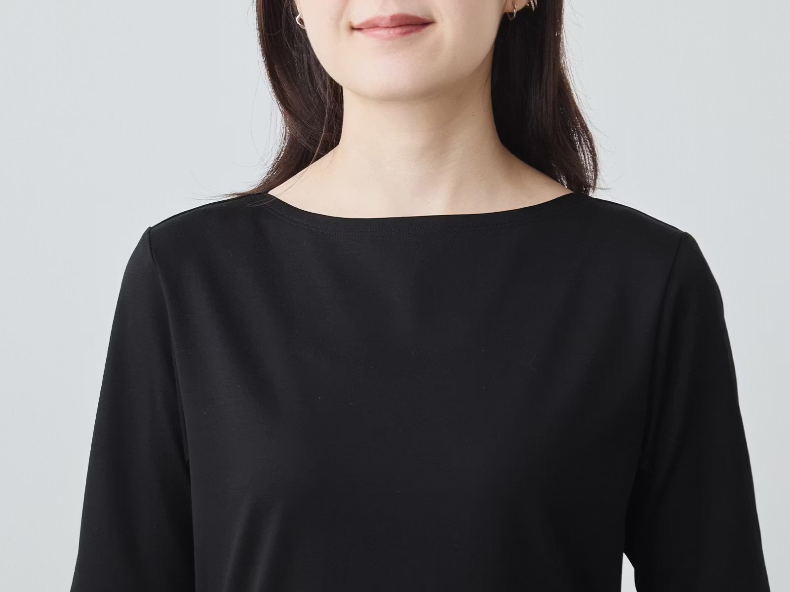 より良い着心地を追求して、七分袖で展開しているものより、ほんのわずかにネックラインを下げました。