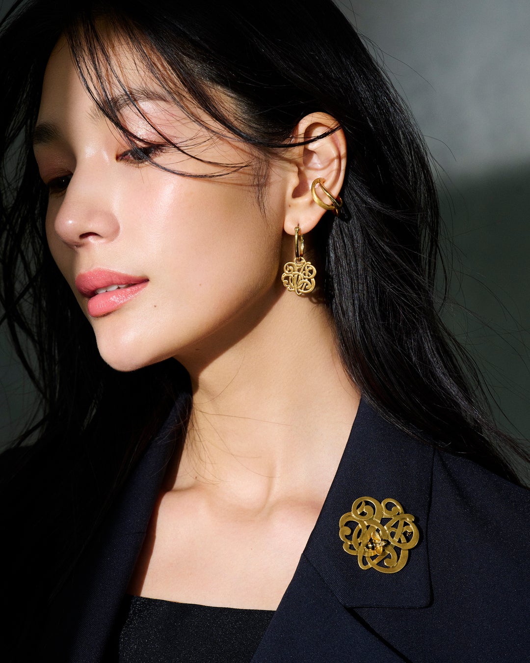 クラシカルなタイポグラフィーをモチーフにしたブローチ。50周年を記念し、ブランドロゴのVBと数字の50が隠れている遊び心溢れるデザインです。モチーフ部分は、大人っぽい印象のマットゴールド仕上げ。