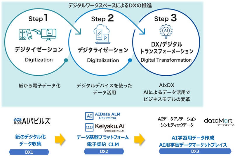 企業のDX推進の最初の障壁となるのは、数々の部門やグループ会社に存在する膨大な紙文書です。AOSデータ社では、紙データをデジタル化して安全に保管するためのデジタイゼーションを支援する「AIパピルス」https://www.aipapyrus.com/を提供しています。
