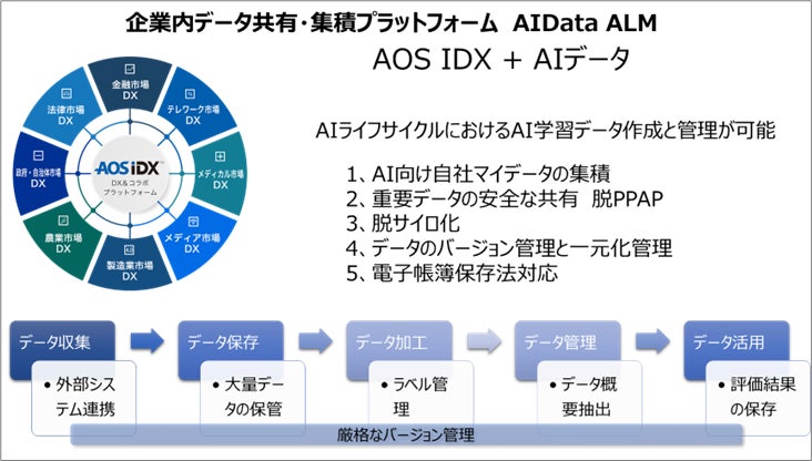 2022年11月28日より、AOSデータ社は、AI学習用のデータに関わる生のデータの収集から、加工したAI学習用データの作成や保存、管理まで行なう、AIシステム開発におけるAIライフサイクルマネジメントプラットフォーム「AIData ALM」https://aidata.jp/alm/の提供を開始しました。