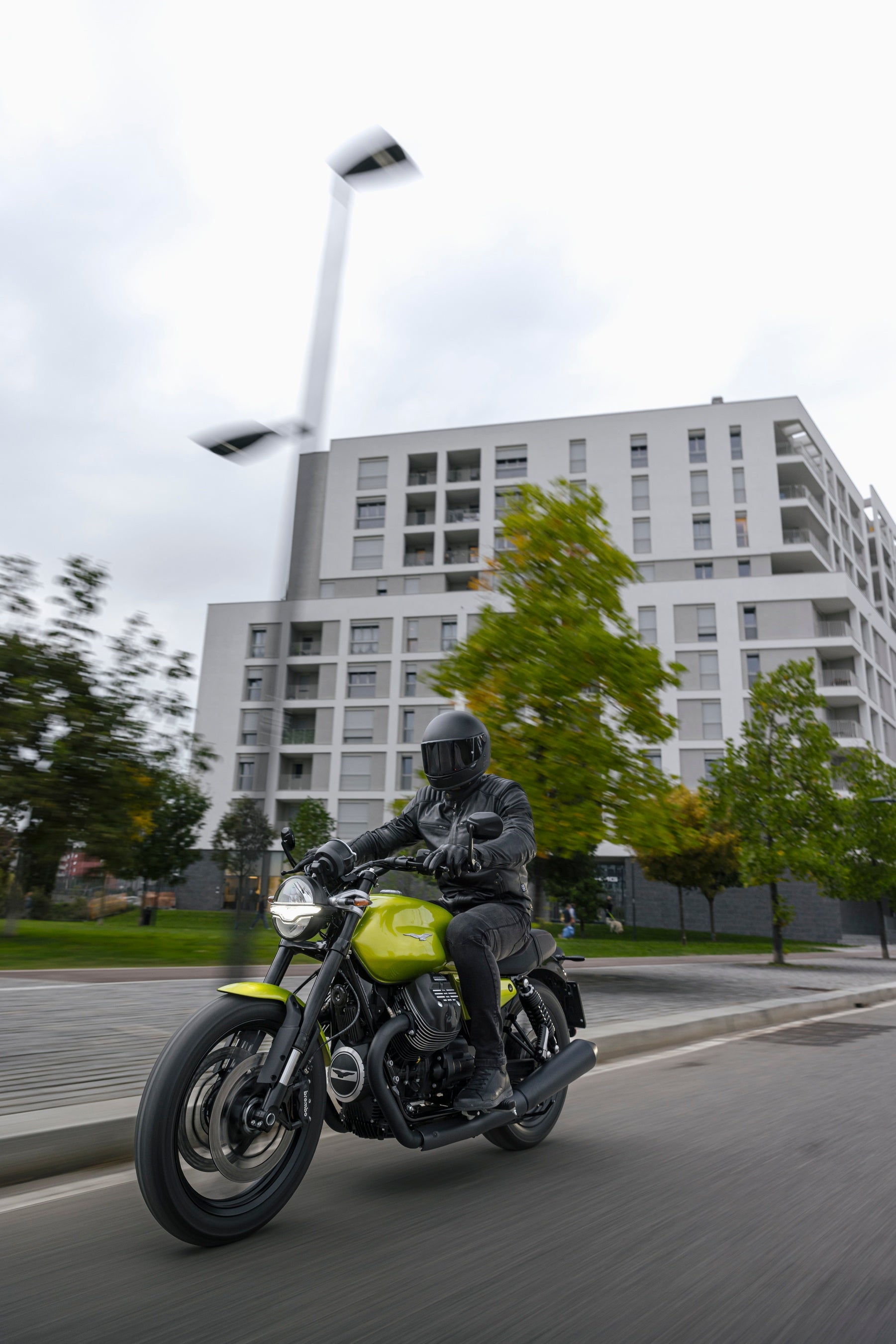 新しい Moto Guzzi V7 は、日常の移動からツーリング、そしてダイナミックなライディングにおいてライダーをアシストする、様々な電子制御機能を搭載しています。ライド・バイ・ワイヤ スロットルは、ライディングをよりやさしく安全にするために設計されたライディング モード機能のメリットを享受できます。