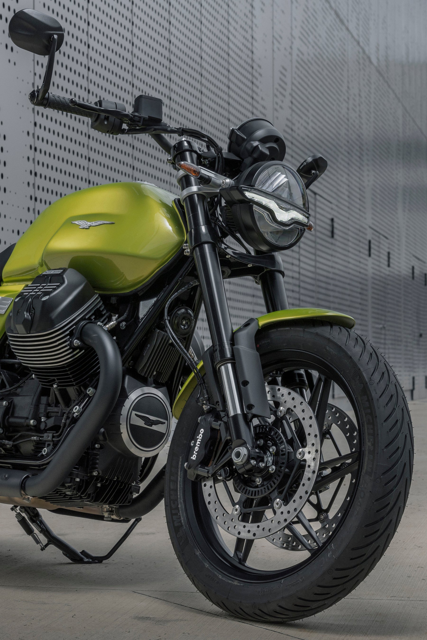 フロントサスペンションについては、V7 Stone と V7 Special は従来の 40 mm径のテレスコピック フォークを維持し、V7 Sport は新たにプリロード調整可能な 41 mm径の倒立フォークを採用し、このモデルがよりスポーティでダイナミックなライディングに焦点を当てて開発していることが表れています。V7 Sport専用の軽量アルミキャストホイールは、V7 Stoneのものよりも 1.8 kgもの軽量化を実現し、ハンドリングの向上に貢献しています。