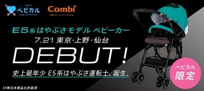 ◆この度、コンビ株式会社と連携し、小さなお子さまに人気の東北新幹線「E5系はやぶさ」をデザインしたオリジナルベビーカーを共同で開発・製作いたしました。東京駅・上野駅・仙台駅のベビカルステーションにて7月21日より利用を開始するとともに、10月31日までの期間限定でご利用いただいた方を対象にプレゼントキャンペーンを開催いたします。